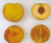 Epoca di maturazione: 22-25 agosto. Il frutto raggiunge grosse pezzature (170-220 grammi) con forma tondeggiante irregolare e asimmetrica La buccia è gialla brillante con sovraccolore rosso su buona parte più della superficie totale. La polpa è gialla, leggermente marezzata di rosso vicino al nocciolo, croccante, di buon sapore e non spicca.
